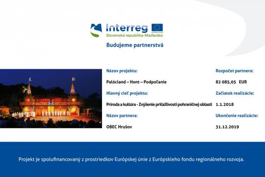 Obec Hrušov zahájila v rámci programu "Interreg V-A program spolupráce Slovenská republika - Maďarsko 2014/2020 realizáciu projektu so zameraním na zachovanie a prezentáciu kultúrneho dedičstva návštevníkom. Projekt sa realizuje v 6. partnerských územiach v maďarskom a na slovenskom pohraničí. Cieľom projektu je zachovať kultúrne a prírodné pozoruhodnosti, rozvíjať a spájať tradičné a súčasné pozoruhodnosti v tematické trasy, výsledkom bude kultúrna cesta.